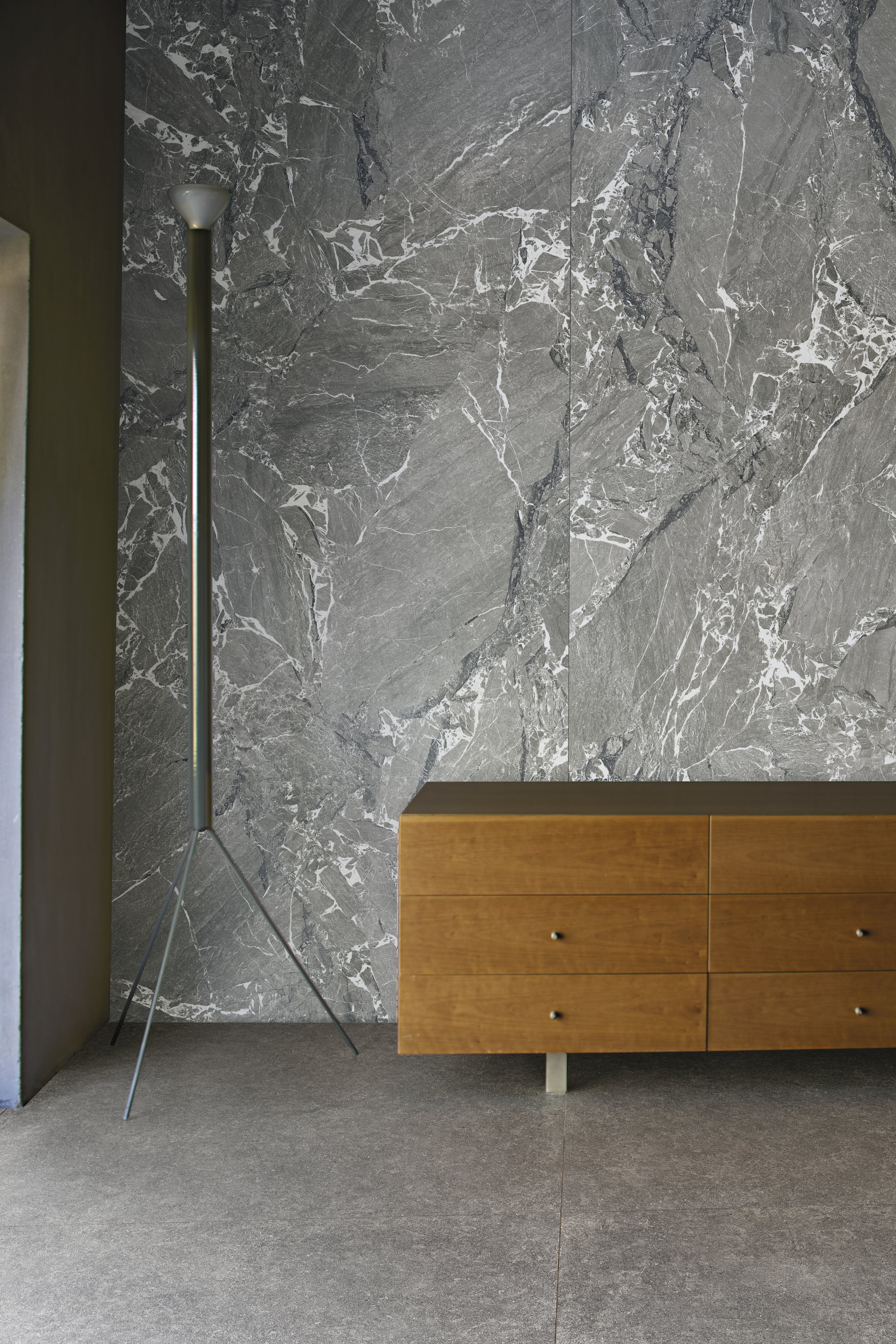 Surface qui relit la tradition des marbres arabesques avec une trame intense, marquée par des veines sombres qui se déplacent sur un fond gris clair. L’effet est dynamique et vibrant, capable de donner du rythme aux espaces sans perdre l’équilibre. Disponible aux formats céramiques 8 mm et en dalle Maximum 270×120 cm, dans les finitions Natural et Natural Plus, Arabescato Grigio puise sa force dans sa capacité à unir classicisme et contemporanéité, devenant une base idéale pour ceux qui veulent exprimer élégance et mouvement. Cette surface au format Maximum est réalisée avec une technologie à base d’eau : rendu esthétique excellent, définition d’image élevée et effet matière, dans le respect de la durabilité environnementale.