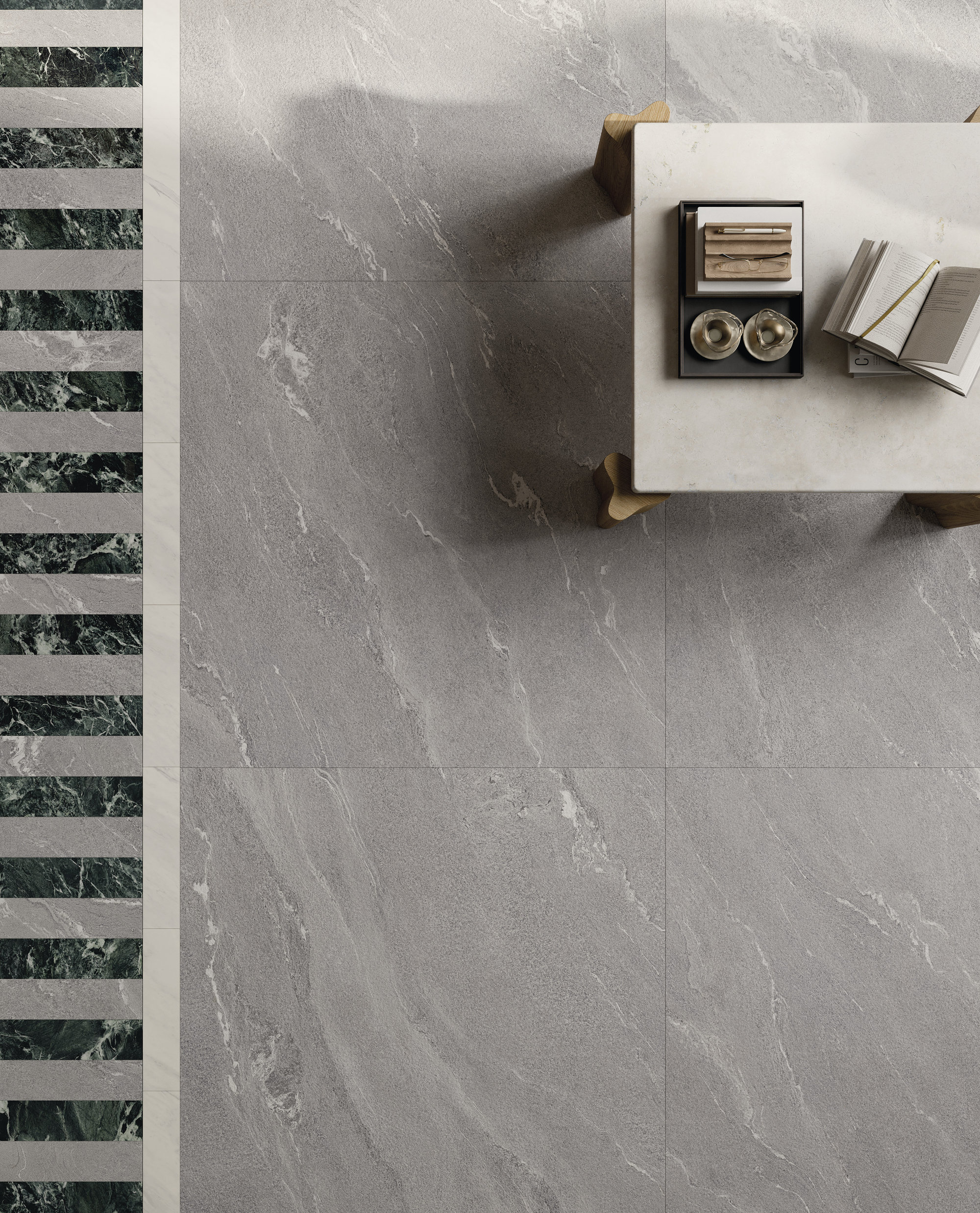 Alpi Chiaro Venato Maximum associe un fond vert intense à des veines blanches qui en soulignent l’élégance et la profondeur. Disponible en différents formats, il convient aux sols et revêtements ; la finition Polished apporte luminosité et brillance à la texture, tandis que la finition Natural confère un aspect mat et plus contemporain.