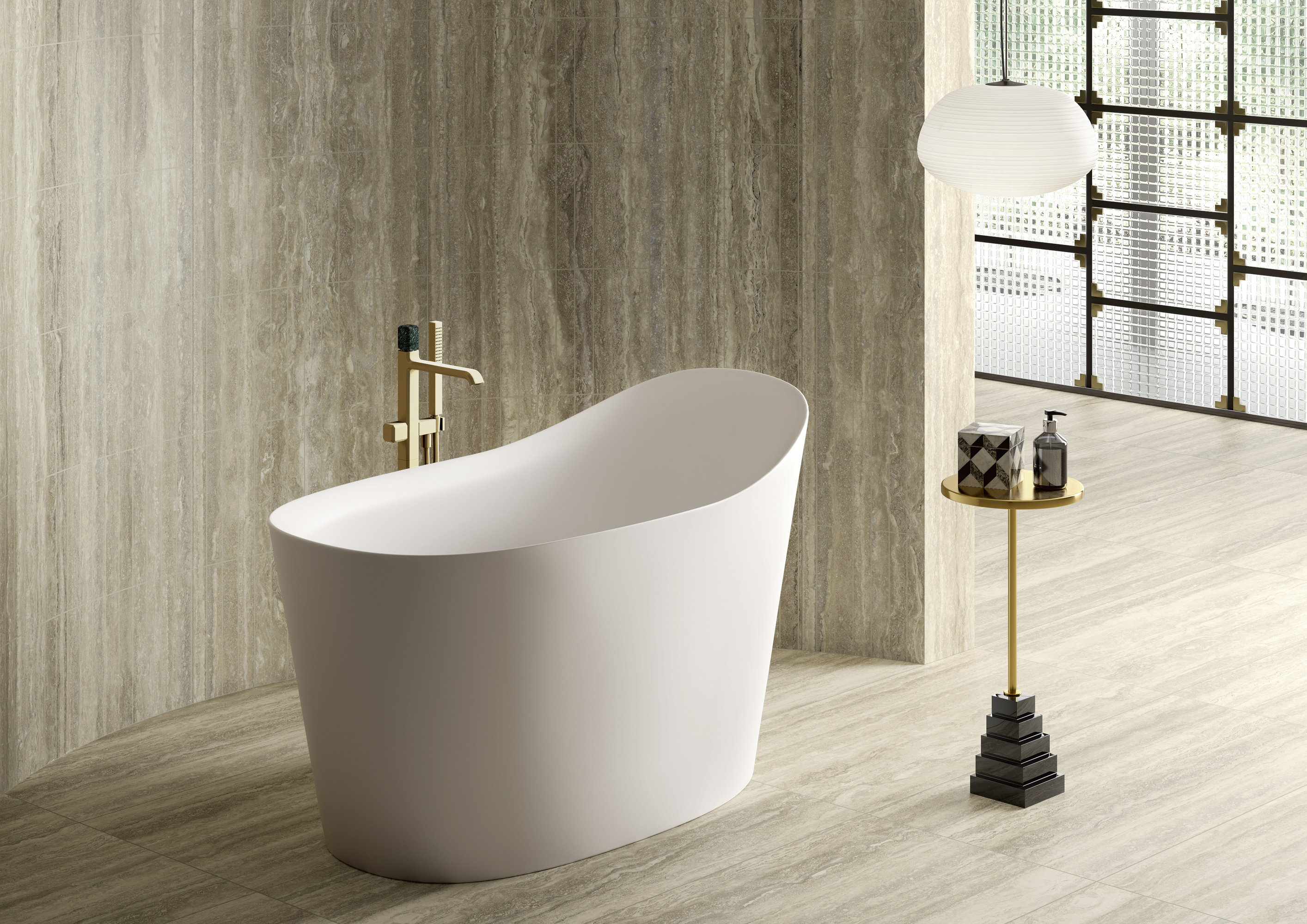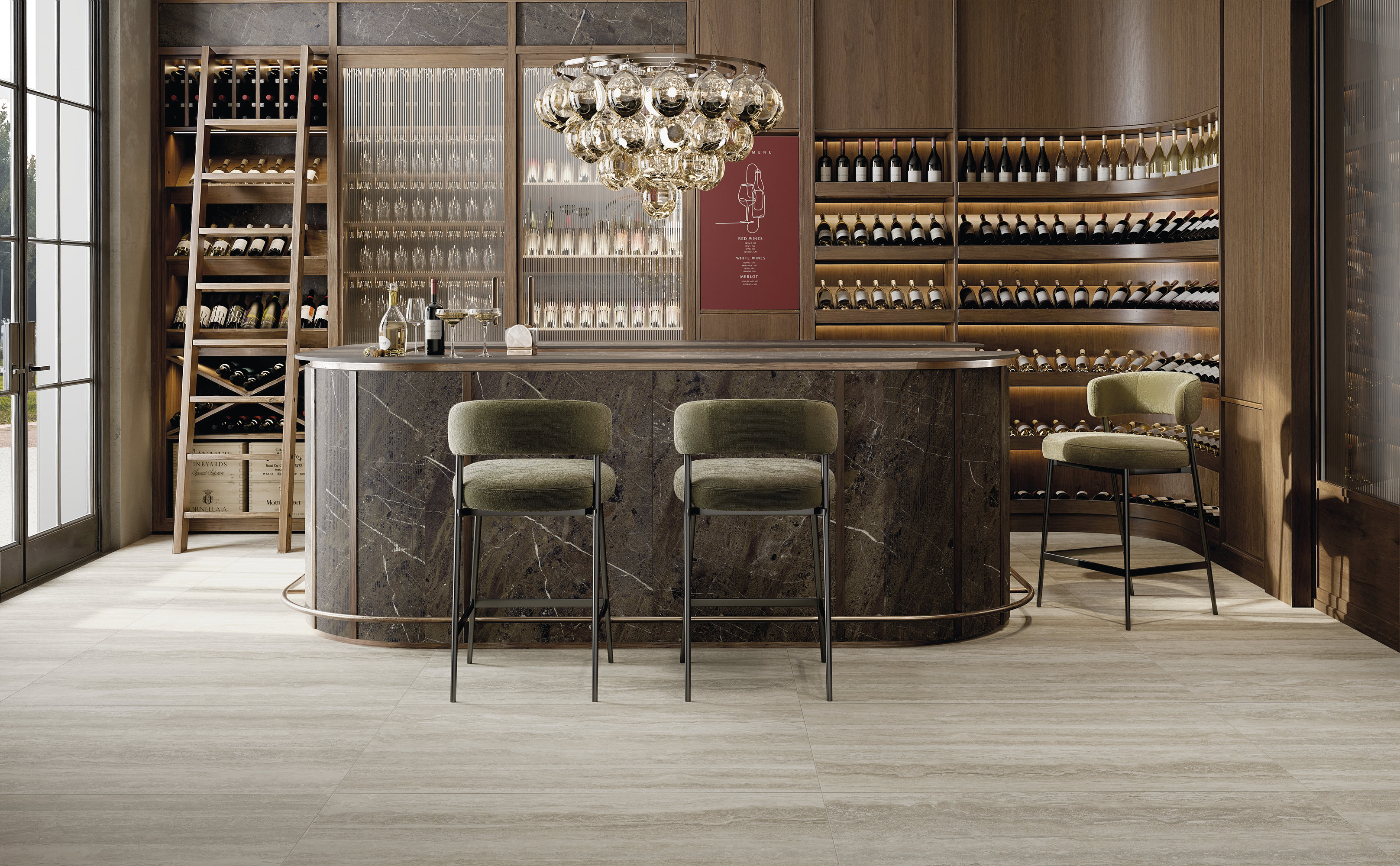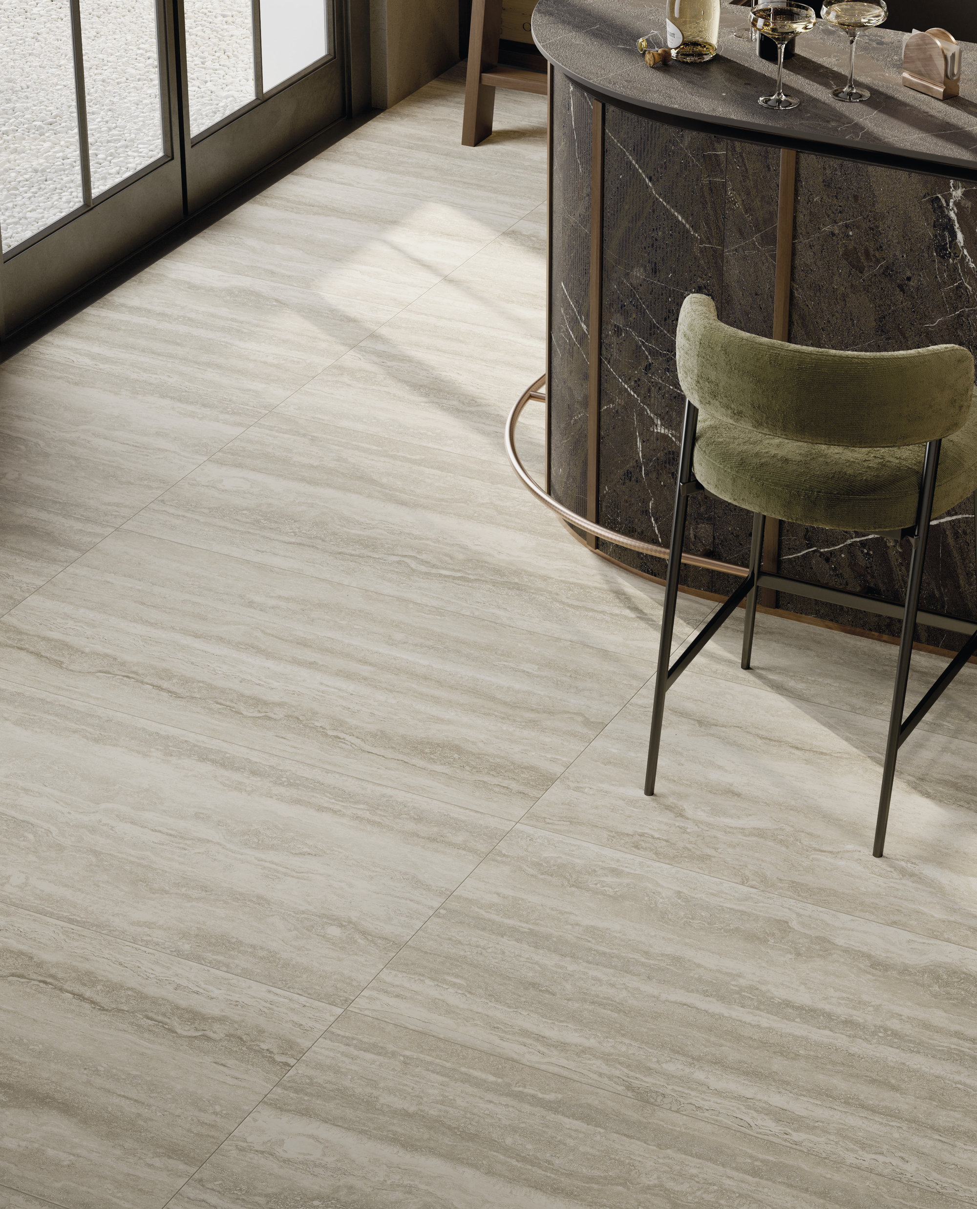 La surface Travertino se distingue par ses veinures horizontales légères, évoquant des paysages façonnés par le temps qui passe. La palette de tons chauds et neutres – du beige au crème, de l’ivoire aux gris les plus doux – transmet une sensation d’équilibre naturel et enveloppant, capable de transformer chaque espace en un environnement élégant et accueillant. Un matériau qui conserve la mémoire de la tradition et la restitue dans une version actuelle et contemporaine.