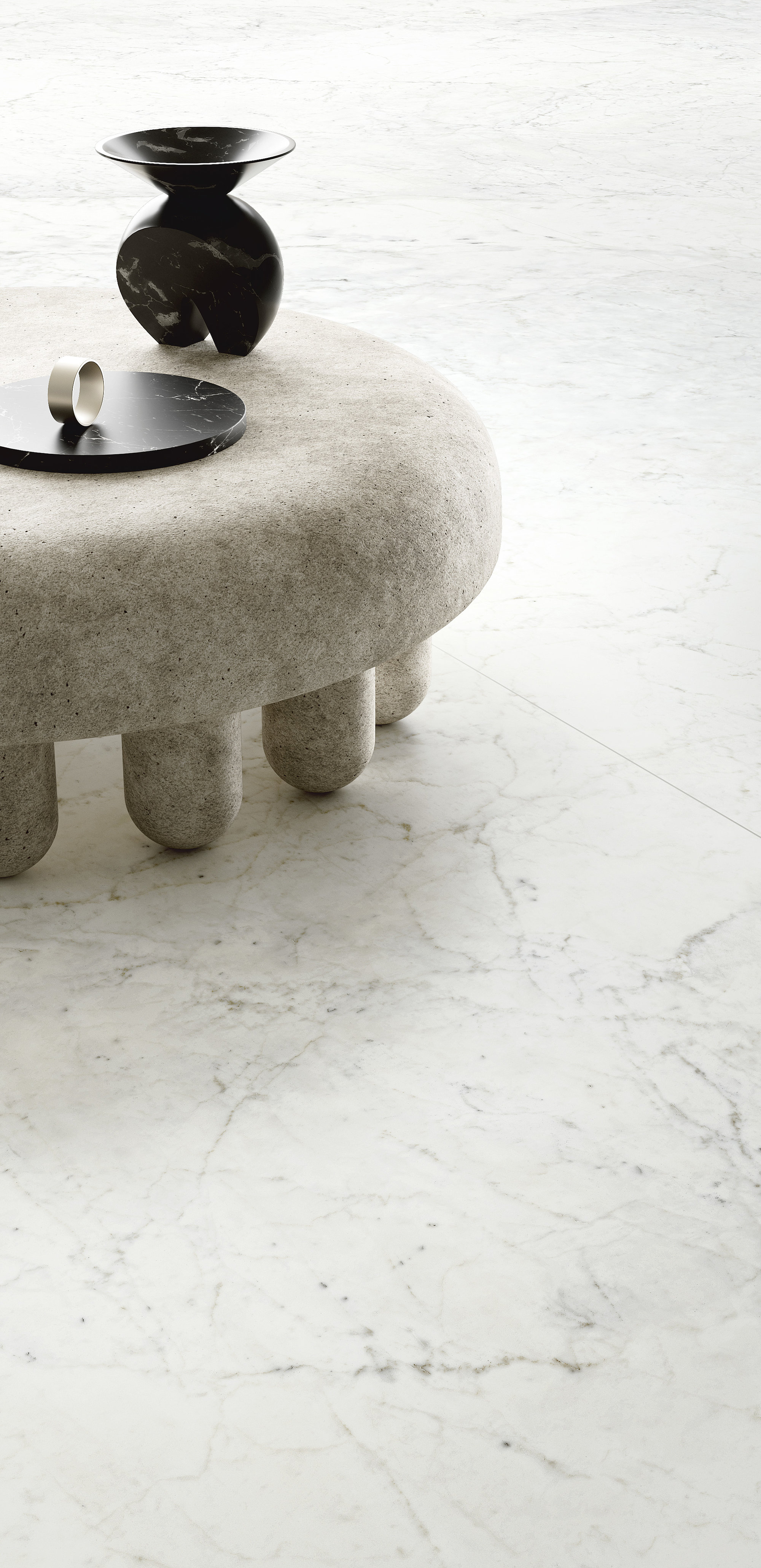 Apuano Purissimo Maximum est une surface céramique d’une élégance exceptionnelle, valorisée par une luminosité unique qui la rend idéale pour des projets de grande valeur. Le fond blanc, rehaussé de fines veines gris clair qui s’estompent délicatement dans les zones d’ombre, apporte raffinement et harmonie naturelle. Proposée en finitions Polished et Natural, grâce à ses grands formats et à son faible épaisseur, elle convient non seulement aux sols, murs et façades, mais aussi à la réalisation de mobiliers et éléments architecturaux personnalisés.