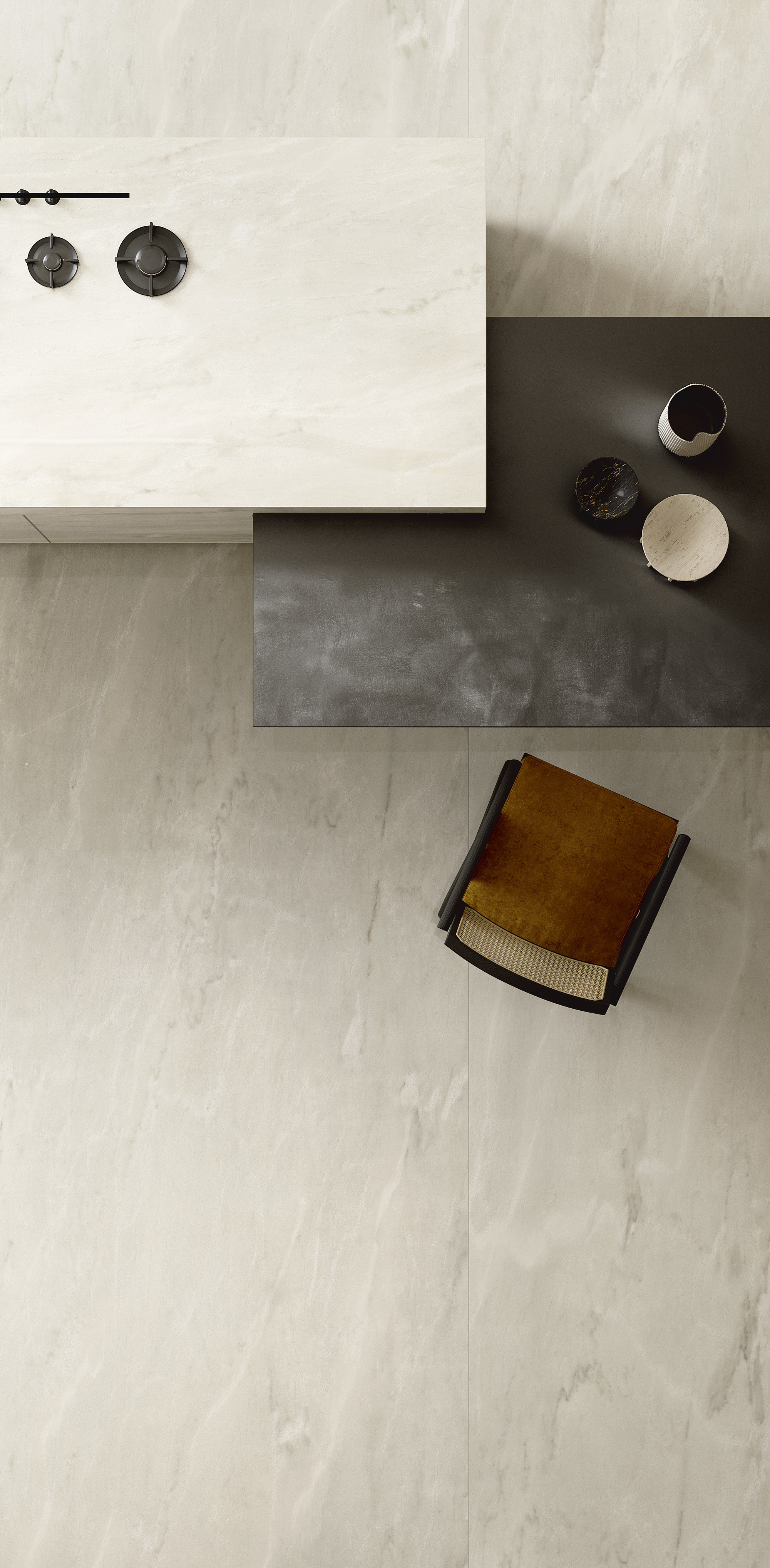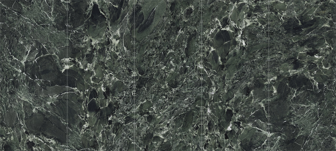 Alpi Chiaro Venato Maximum associe un fond vert intense à des veines blanches qui en soulignent l’élégance et la profondeur. Disponible en différents formats, il convient aux sols, revêtements muraux et meubles, tandis que les dimensions 270x120 et 120x120 cm sont conçues pour réduire les déchets et répondre aux standards les plus courants pour les murs et les receveurs de douche.