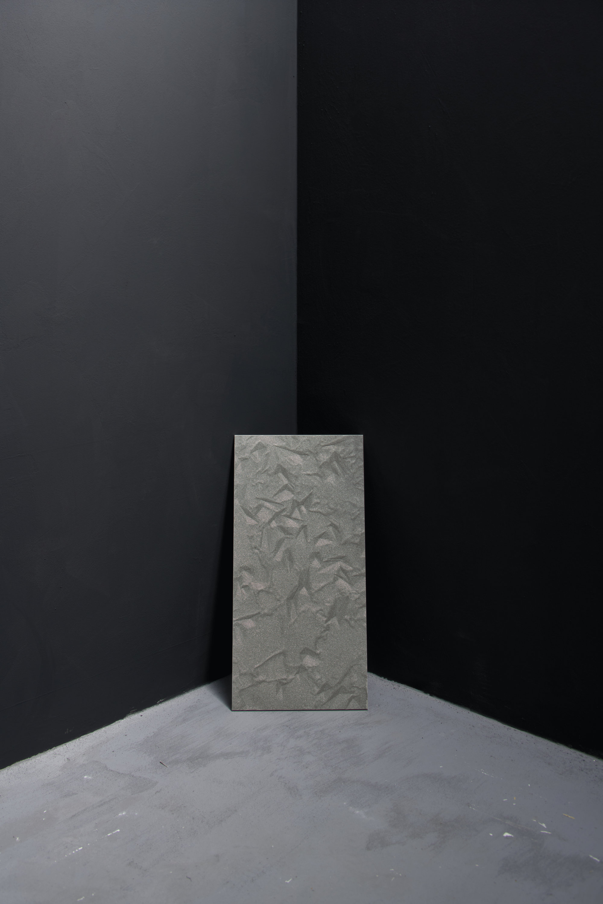 Un gris dense et foncé qui modifie sa texture et sa brillance grâce aux motifs des surfaces laminées, donnant parfois l’impression de se solidifier, parfois de se liquéfier. Les ciselures, vibrantes mais discrètes, créent des ombres subtiles qui s’étendent ou se dilatent avant de se fondre en points de lumière, apportant rythme et audace à l’espace. Shark est disponible en différentes options de design qui jouent sur les surfaces avec les épaisseurs, les creux et la lumière réfléchie : Paint, avec ses mouvements, reproduit un effet spatulé frais et industriel ; Fold, avec ses formes irrégulières, rappelle un papier délicatement froissé ; tandis que les maillages de Net imitent un entrelacement de fils métalliques et de textures satinées.