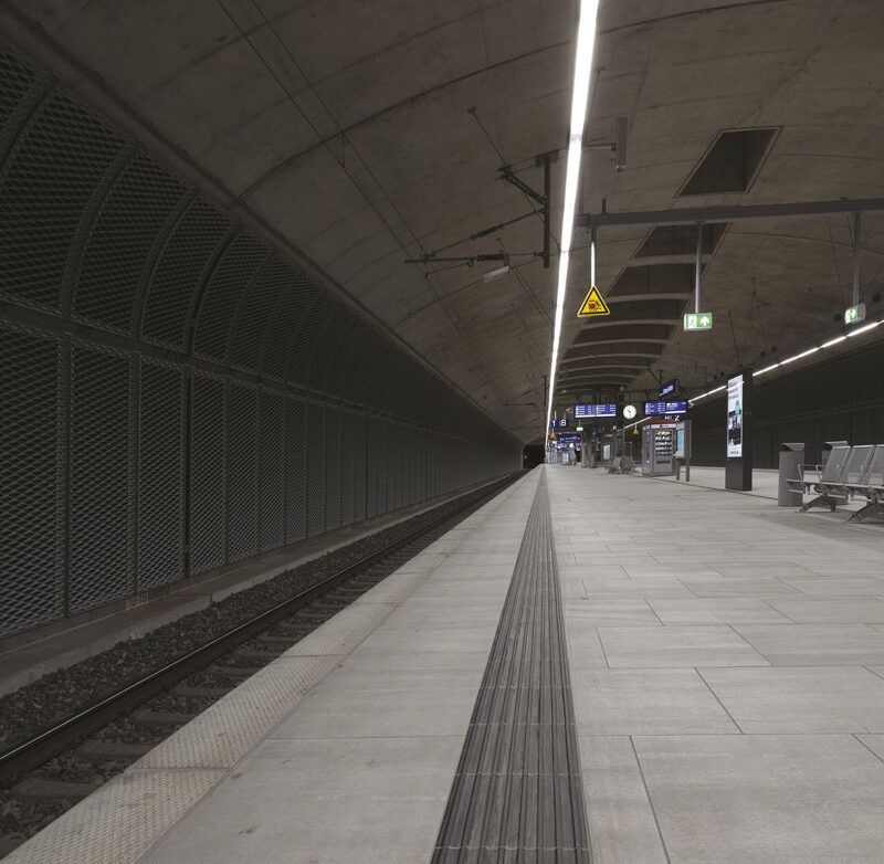 L’intervention architecturale met l’accent sur des espaces clairs, sûrs et facilement orientables, portés par un langage visuel contemporain en harmonie avec l’identité du nouveau quartier. Lignes épurées, matériaux durables et solutions d’éclairage intégrées font de la gare un nœud de transit moderne et intuitif, capable d’accueillir un trafic élevé sans congestion.