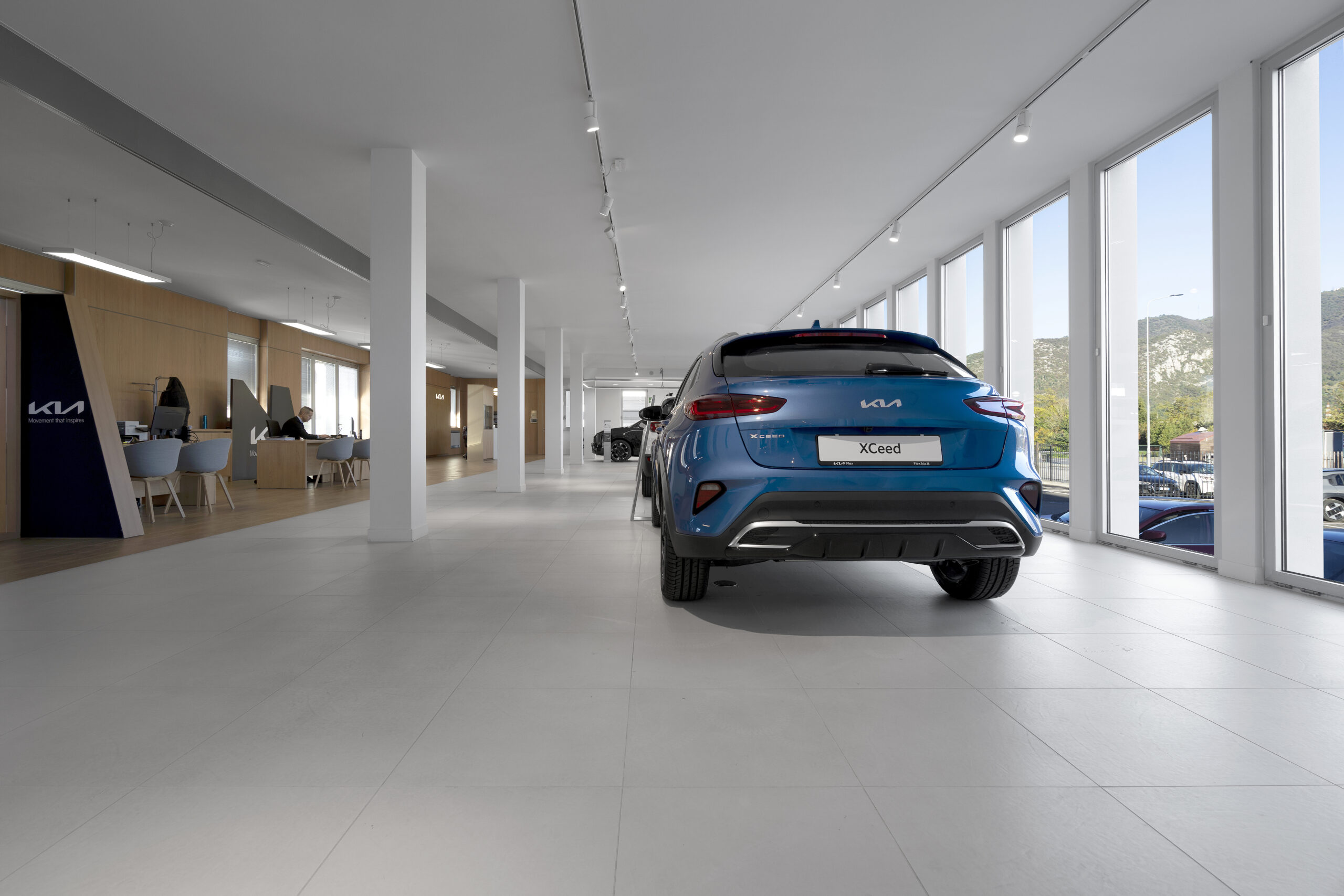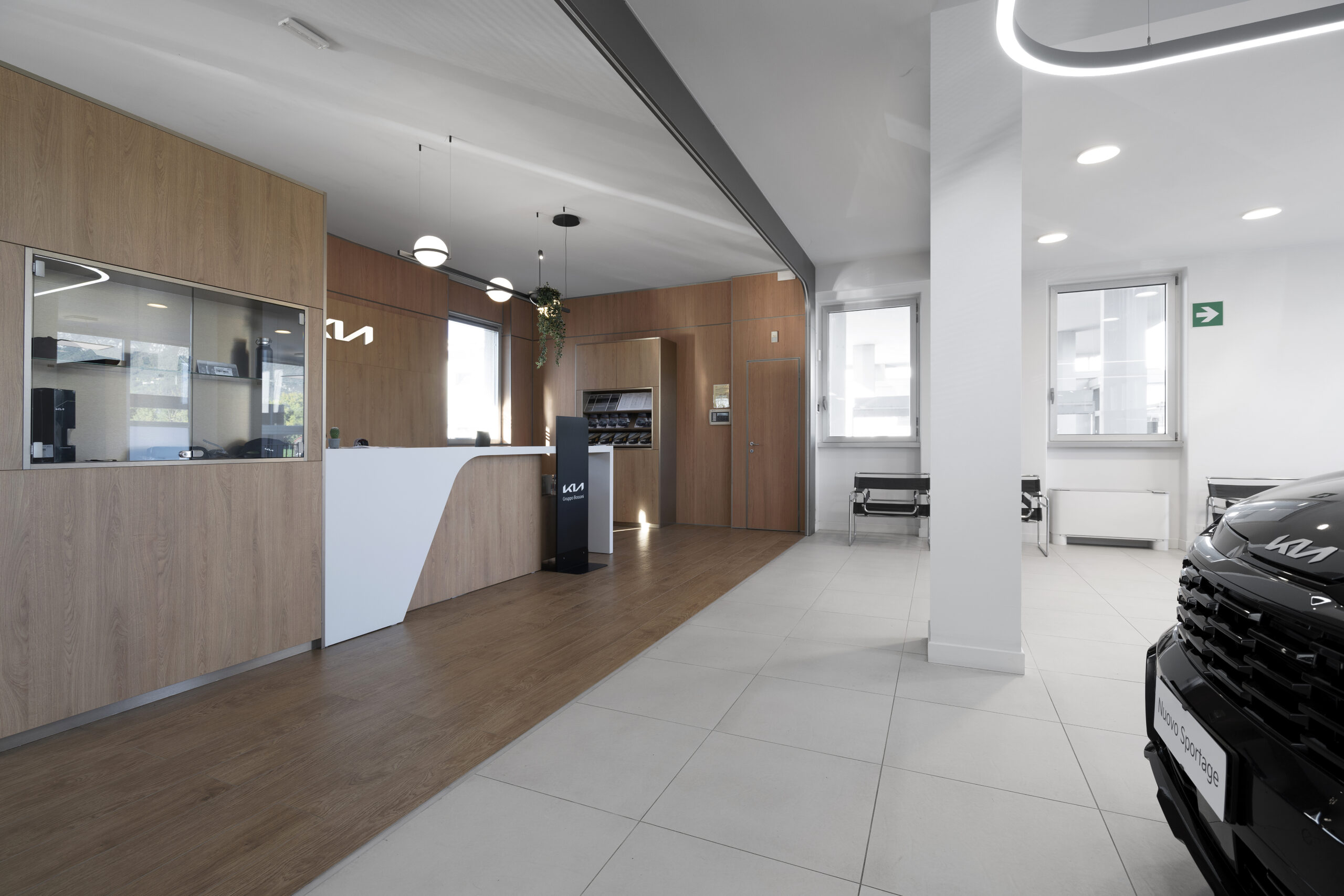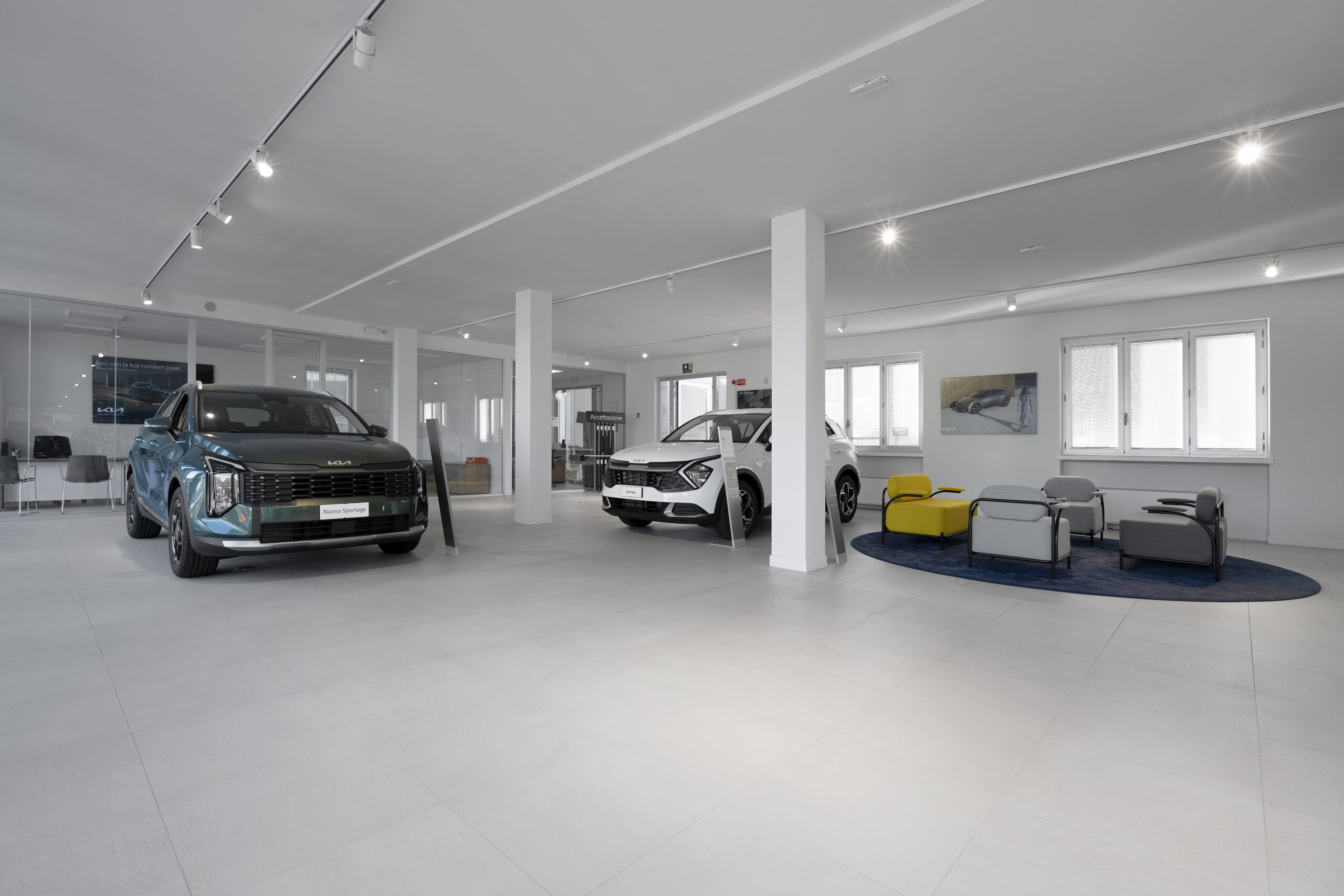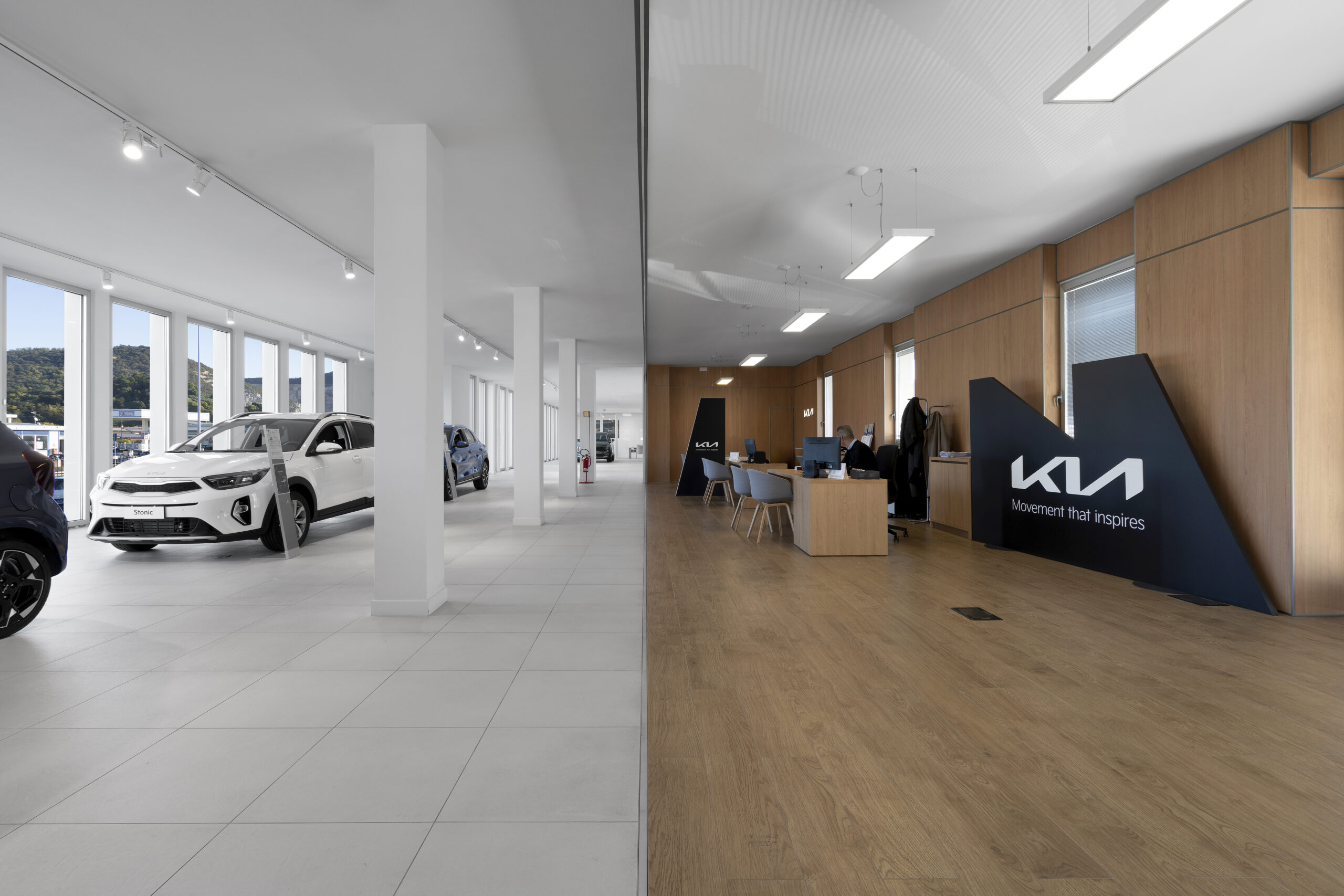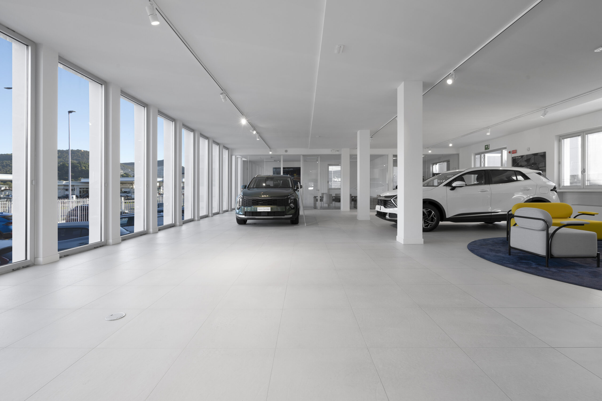 Le nouvel espace est conçu pour offrir une expérience client complète et raffinée, intégrant un showroom, un atelier et un espace après-vente dans une structure unique, moderne et fonctionnelle. Un élément distinctif du concept retail est l’utilisation des céramiques Fiandre, qui contribuent à mettre en valeur les véhicules exposés, créant un arrière-plan élégant et sophistiqué qui fait ressortir les lignes et les détails des voitures. L’objectif est de faire ressentir à chaque visiteur un environnement exclusif, accueillant et hautement professionnel, où chaque élément de l’espace contribue à mettre en avant le produit.