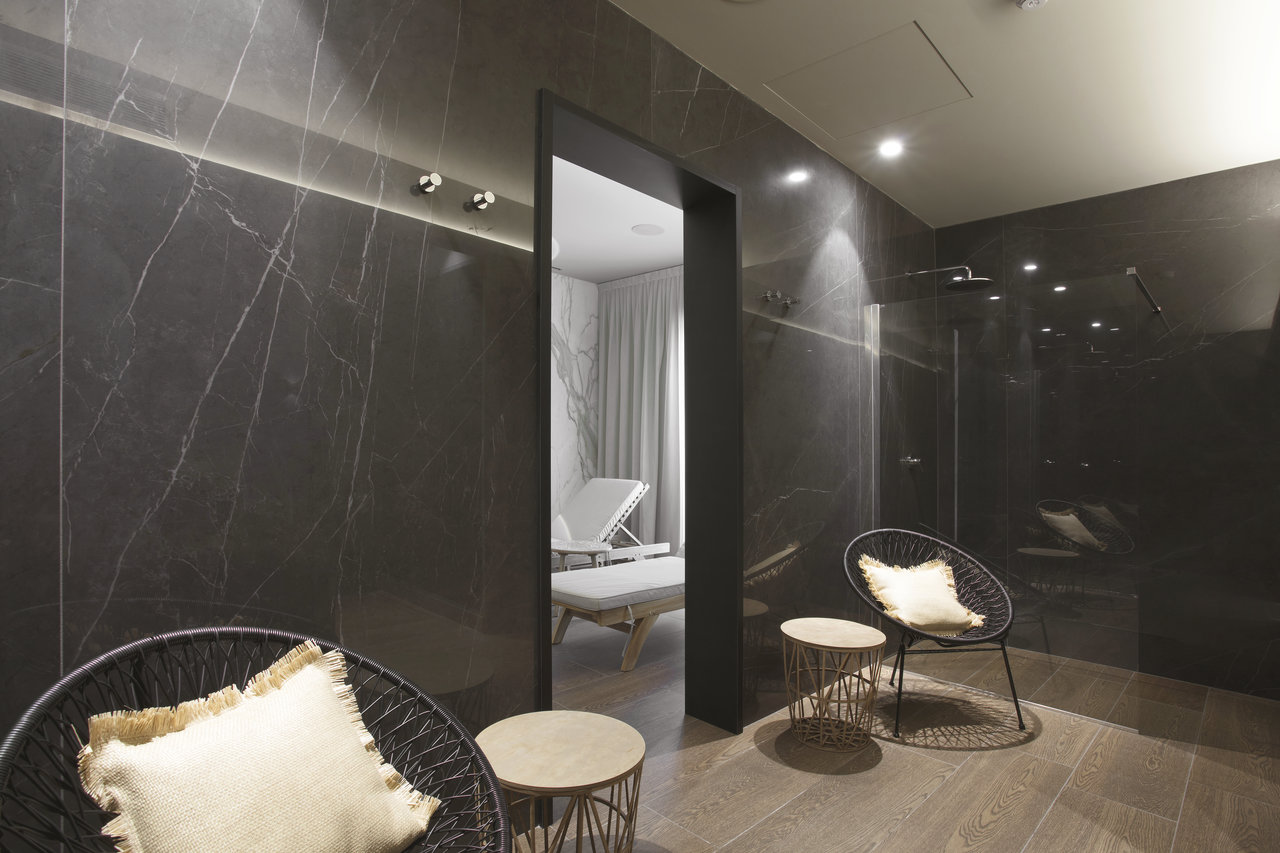 Véritable joyau de la structure, le spa est une oasis de paix dédié à la santé et à la beauté, un bijou desthétique et de fonctionnalité pensé pour transmettre des sensations de tranquillité, d’harmonie et de sérénité. Chaque espace a été conçu pour offrir des suggestions différentes, grâce aux revêtements de Fiandre Architectural Surfaces qui, avec leurs effets scéniques, embellissent les sols et les murs.