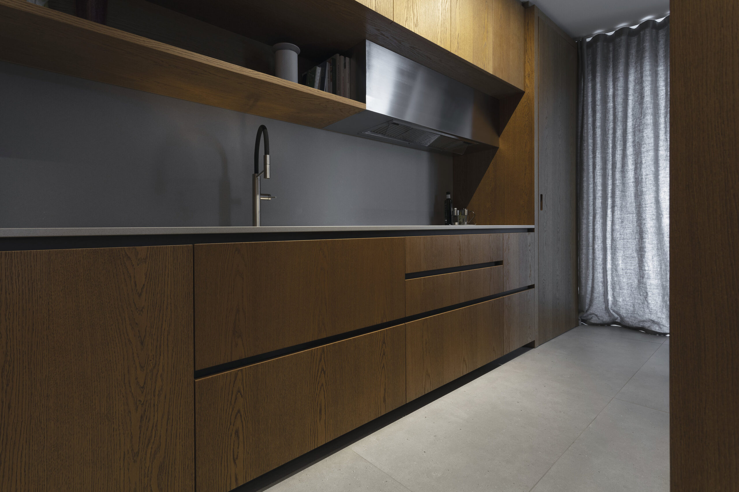 Les céramiques Fjord de Fiandre jouent un rôle central dans le projet, utilisées pour les sols extérieurs, intérieurs et les escaliers. Inspirées de la pierre naturelle, elles assurent une continuité visuelle entre les espaces, tout en offrant résistance et qualité tactile, contribuant ainsi au caractère intemporel de l’architecture.