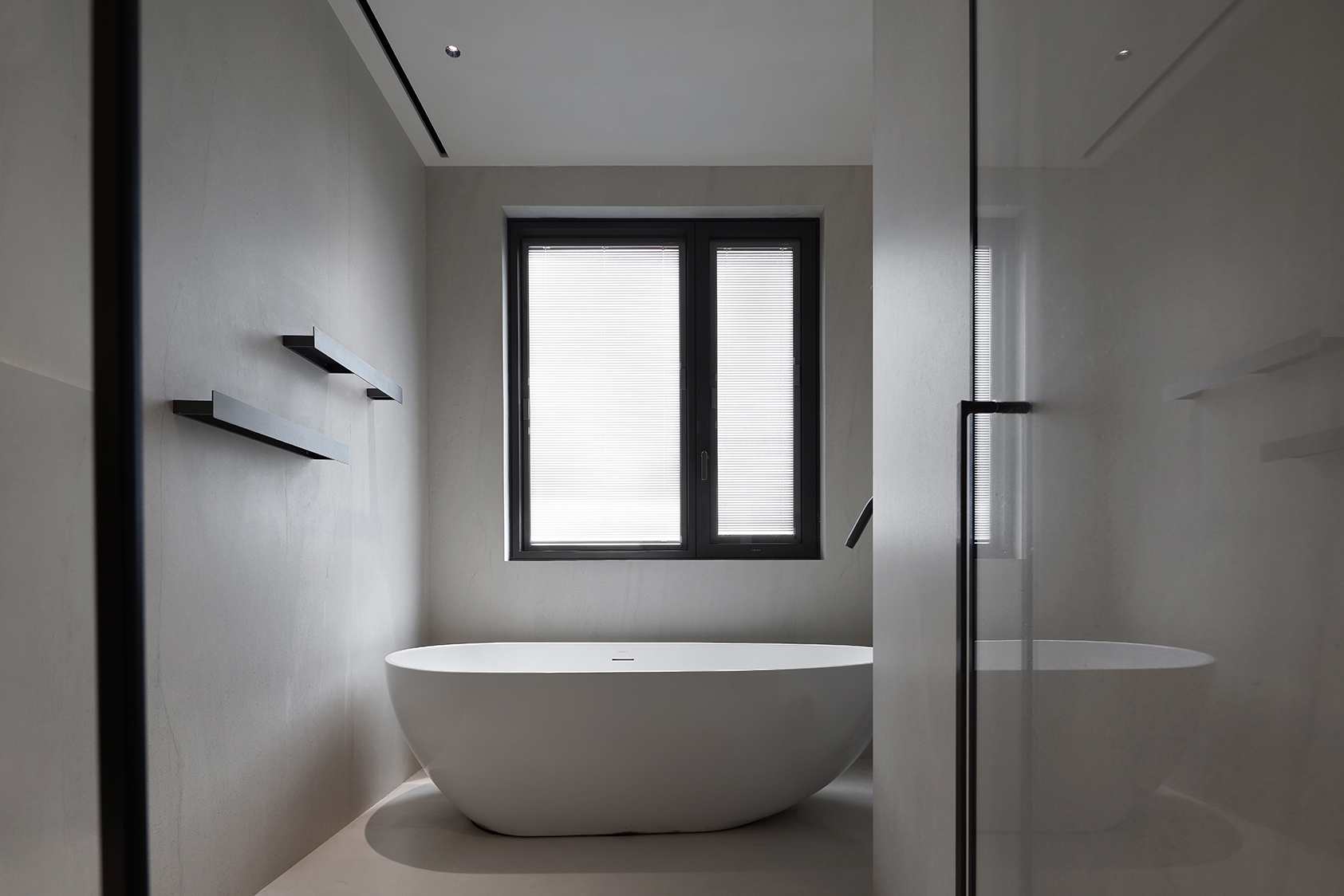 Un élément clé du projet réside dans l’utilisation de surfaces en grès cérame, qui contribuent à définir la continuité visuelle des espaces. Dans plusieurs zones de la résidence, les grandesdalles céramiques Megawhite et Megagrey Megalith Maximum, fournies par le partenaireCremonastone, ont été choisies pour leur capacité à associer hautes performances techniques et esthétique contemporaine d’une grande pureté.